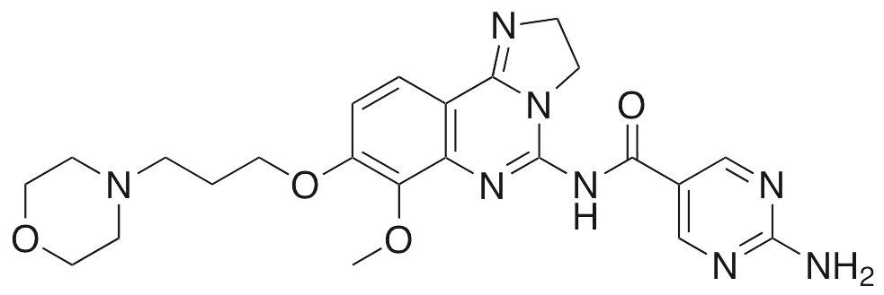BAY80-6946 is an inhibitor of p110α PI3K that exhibits anticancer chemotherapeutic activity. BAY80-6946 is currently in clinical trials and shows some benefit in the treatment of pancreatic cancer. In cellular and animal models of multiple myeloma, BAY80-6946 inhibits cell cycle progression, induces apoptosis, and inhibits cell proliferation and tumor growth.