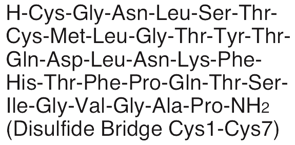 Calcitonin is an endogenous neuropeptide that exhibits pro-oncogenic, anti-osteoarthritic, and anti-resorptive activities. Calcitonin induces activation of NF-κB, upregulating expression and activity of fibronectin, MMP-1, MMP-2, and MMP-9 and increasing cell growth in osteosarcoma cells. When administered clinically, calcitonin increases serum NO and urinary CTX-II levels, improving medial femoral condyle osteoarthritis. Calcitonin also inhibits SCDP-induced apoptosis of osteoclasts and increases bone formation and volume.