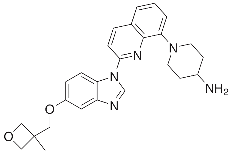 Crenolanib is an inhibitor of FLT3 and PDGFR that exhibits anticancer chemotherapeutic activity. Crenolanib inhibits cell proliferation and induces apoptosis in non-small cell lung cancer (NSCLC) and acute myelogenous leukemia (AML) cells. In animal models of NSCLC, crenolanib inhibits tumor growth.