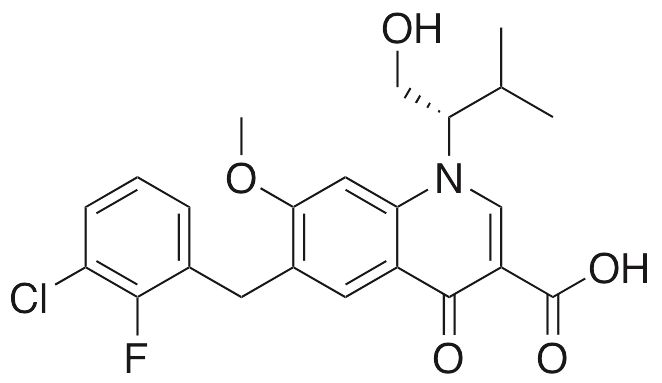 | IUPAC Name | 6-[(3-chloro-2-fluorophenyl)methyl]-1-[(2S)-1-hydroxy-3-methylbutan-2-yl]-7-methoxy-4-oxoquinoline-3-carboxylic acid |