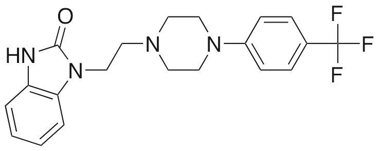 Flibanserin is an agonist at 5-HT1A receptors and an antagonist at 5-HT2A receptors. Flibanserin is clinically used to treat hypoactive sexual disorder in females. Flibanserin also decreases dystonia induced by L-DOPA and quinelorane in animal models of Parkinson’s disease.