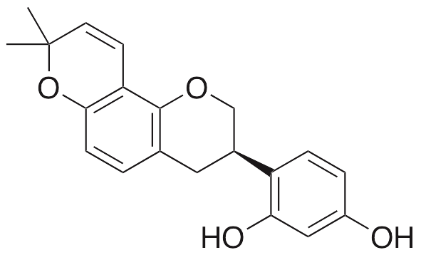 Glabridin is a phytoestrogen and isoflavonoid originally found in the root of the licorice plant, Glycyrrhiza. Glabridin displays antioxidative, anti-obesity, anti-angiogenic, neuromodulatory, cognition enhancing, and sedative/hypnotic characteristics. In osteoblasts, glabridin downregulates PI3K and Akt and upregulates superoxide dismutase 1 and glutathione peroxidase 4; it also promotes fatty acid oxidation and inhibits adipogenesis. In animal models, this compound improves learning and memory, potentially through positive modulation of the GABA-A receptor. Additionally, glabridin inhibits Rho signaling by decreasing FAK and Src activation, inhibiting cancer cell migration and invasion as well as angiogenesis in vitro and in vivo.