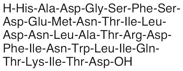 Glucagon-like peptide 2 (GLP-2) is an endogenous peptide hormone primarily synthesized in the intestine and pancreas. GLP-2 binds and activates the GLP-2 receptor, exhibiting vasodilatory, antihypertensive, antidepressant, and gastrointestinal motility modulating activities. In animal models, GLP-2 increases intestinal blood flow and decreases mean arterial blood pressure. GLP-2 potentiates L-type voltage-gated Ca2+ channels through a mechanism that involves activation of PKA. Additionally, GLP-2 decreases immobility time in animals undergoing the forced swim test. This peptide stimulates cell proliferation, inhibiting chemotherapy-induced mucosal atrophy in the intestines. GLP-2 also decreases gastric emptying and gastrointestinal motility.
