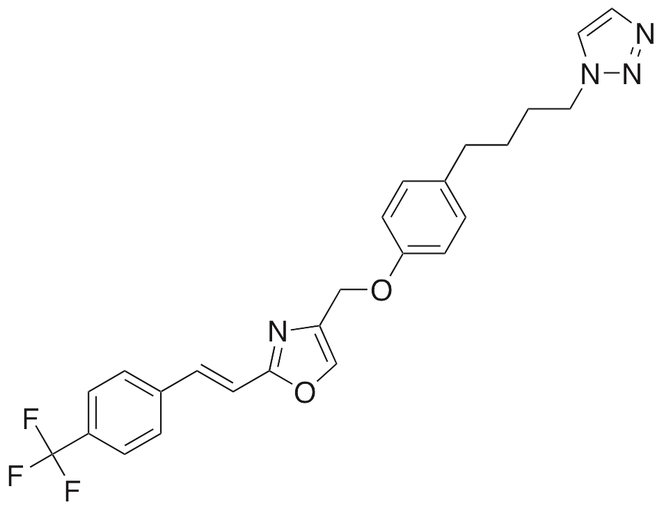| Chemical Name | 1-(4-{4-[(2-{(E)-2-[4-(trifluoromethyl)phenyl]ethenyl}-1,3-oxazol-4-yl)methoxy]phenyl}butyl)-1H-1,2,3-triazole |